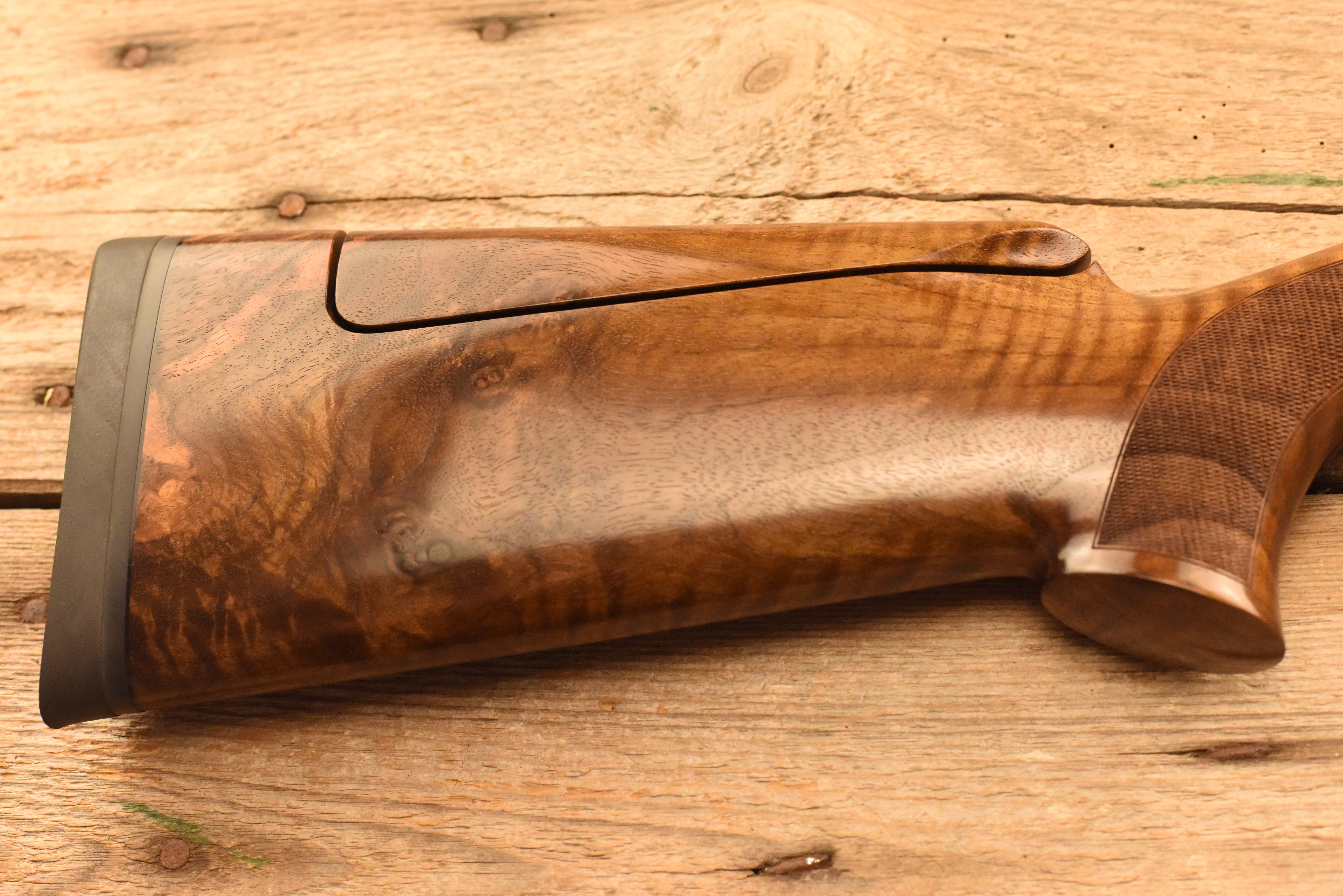 By BLASERA beautiful looking Grade 5 wood set! With the great addition of having an adjustable stock fitted. Comes with a Blaser hard case, a set of extended chokes, and barrel weights. 10 years manufacturer's mechanical warranty. - Finance available. - Part exchanges welcomed. - Guns can be sent to your local Gun Shop. - International export available.